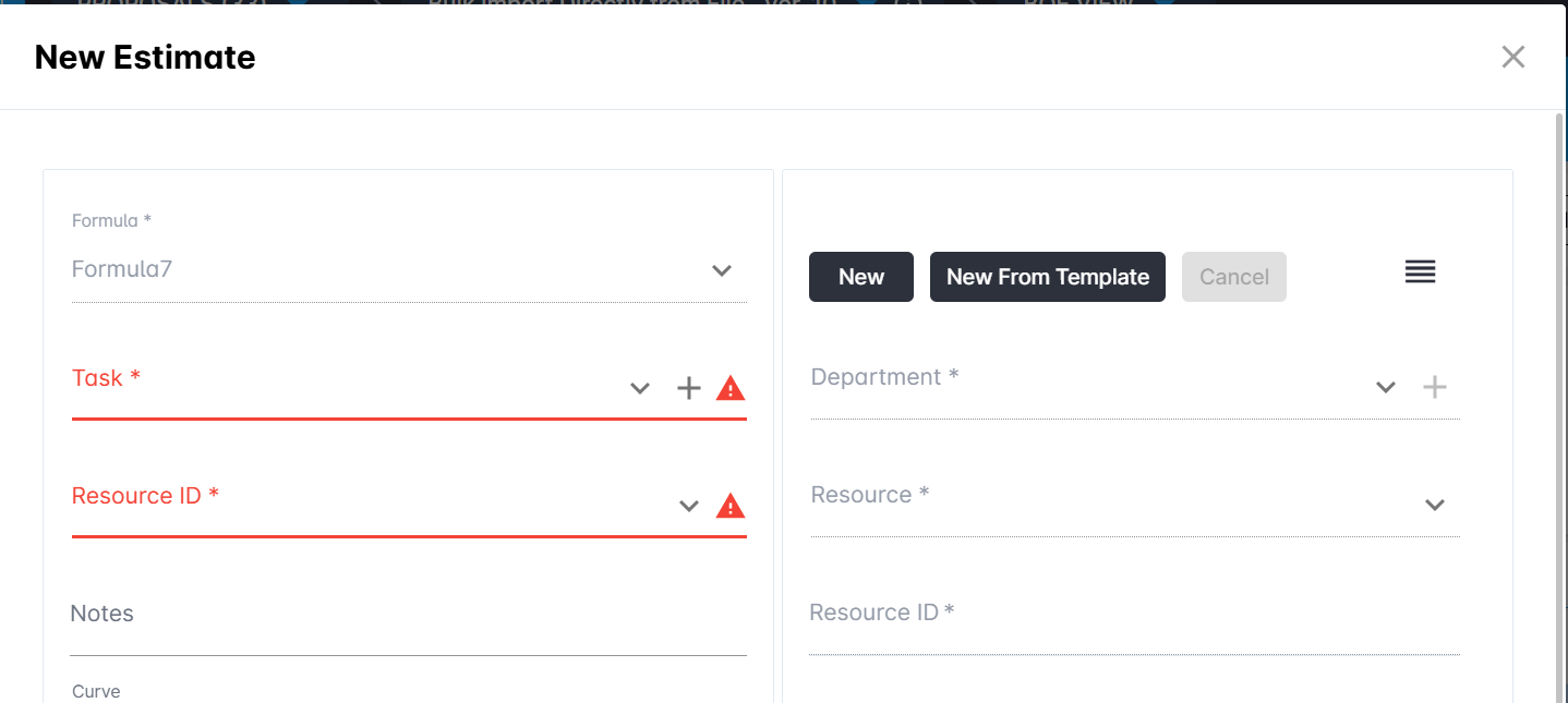 Description: Double-clicking a formula in the Section view opens the Add Estimate window, where the estimator can add resources, worth leaving the BOE Section.